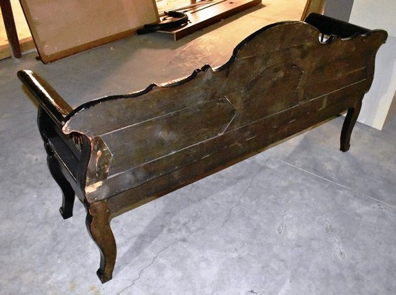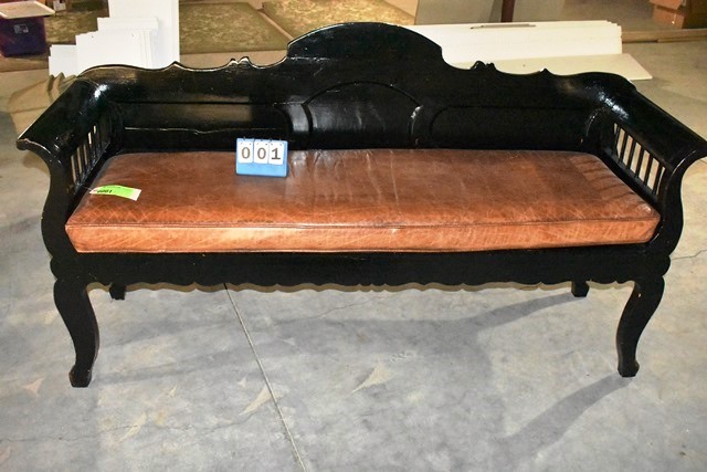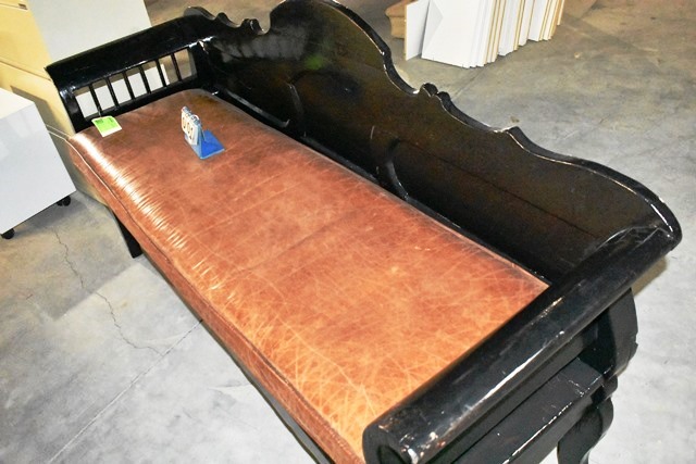 Antique Leather Settee with Beautiful Hand Carved Wooden Details, 74" L