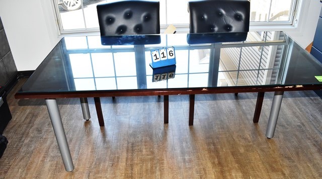 Table with Glass Top, 6' W, Comes with 2 Chairs