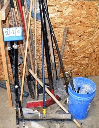 Shovels, Brooms, a Rake, Post Hole Digger, Fence Post Pounder, Etc.