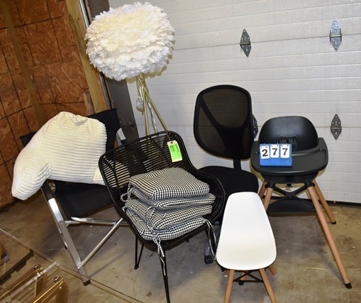 Children's White Bucket Chair, Chair Cushions, White Memory Foam Plush Microfiber Reading Pillow, Tripod Feather Floor Lamp, The Chair by Lalo Highchair, Misc. Chairs