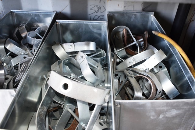 Lot of Pipe Hangers and Clamps, Including 1" Straight, 3/4" Straight, 1" 90's, 1 3/8" Outer Diameter Cushion Clamps