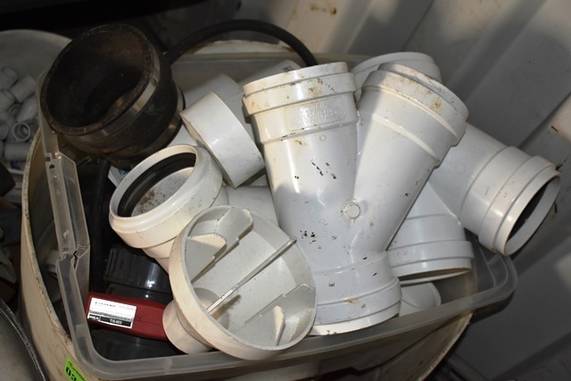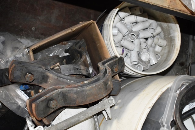 Lot of Plumbing Hardware Including PVC Unions, Fittings, Pipe Hangers, Etc.