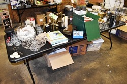 36" W Plexiglass Stand, 43" x 24" Glass top Table, Mirror, Etc.