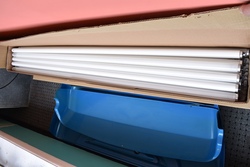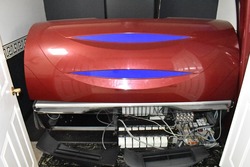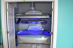 UWE P90 Tanning Bed Total Number of Lamps: 37, Fully Customizable Multi-Level Body and Facial Lamps, Amplified Surround Sound Speaker System, High Pressure Shoulder Tanning Lamps, Dual Jet Body Misters, Aroma Therapy, A/C Cooling System, T-Max Wireless Ready, Electric - 3 Phase / 80 Amp / 4 Wire, Comes with New Container of Aroma Therapy Solution. 89"L. Buyer Responsible for Safe Disassembly and Removal, Must Provide Certificate of Insurance Prior To Removal Day, Power Will Be Disconnected After Preview Day.