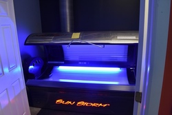 Future Industries Sun Storm 44/4 Tanning Bed (19)-160 Watt Canopy Tubes, (25)-140 Watt Bench Tubes, (4)-1,000 Watt Facial Tubes, Powerful Fans, 12 Minute Max. Buyer Responsible for Safe Disassembly and Removal, Must Provide Certificate of Insurance Prior To Removal Day, Power Will Be Disconnected After Preview Day.