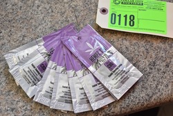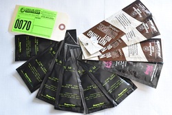 Lot of 9 Assorted Tanning Lotion Packets and Partial Roll of Wink Ease Disposable Eye Protection Stickers