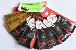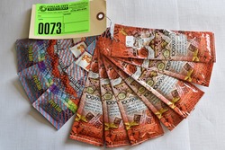 #117 - Lot of 9 Assorted Tanning Lotion Packets and Partial Roll of Wink Ease Disposable Eye Protection Stickers