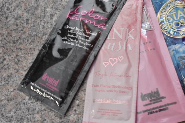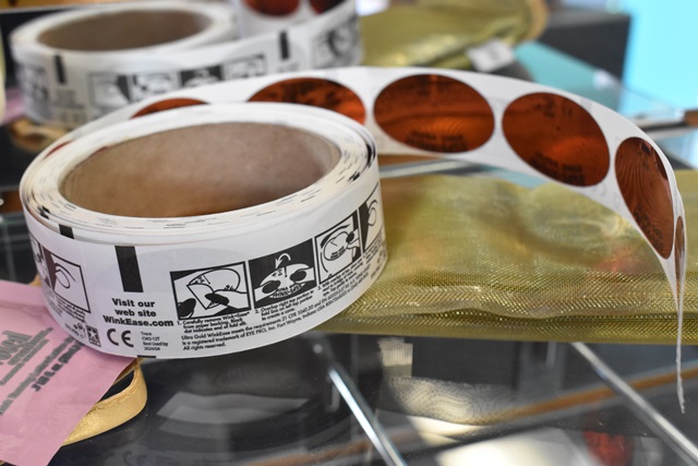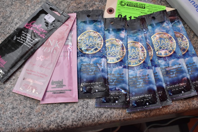 Lot of 9 Assorted Tanning Lotion Packets and Partial Roll of Wink Ease Disposable Eye Protection Stickers