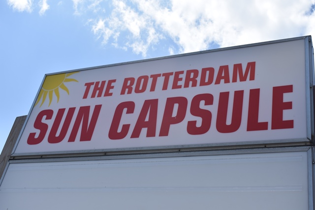 Rotterdam Sun Capsule Sign, Approx. 8'W Buyer Gets Only Sign Panels, Buyer Responsible For Removal Will Need Ladders and Certificate of Insurance to Ensure Safe Removal.