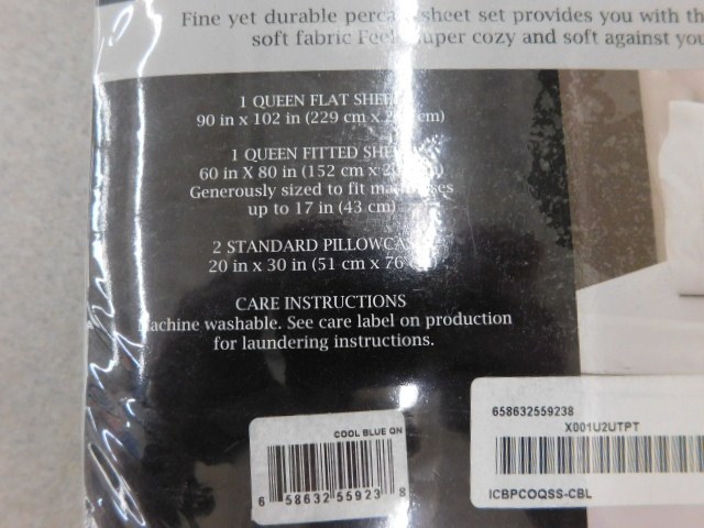 100% Cotton Percale Weave Blue Queen Bedsheet set