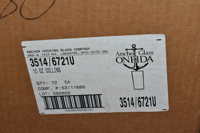 Lot of 2 cases of Anchor Glasses Oneida 10 oz. Collins Glasses