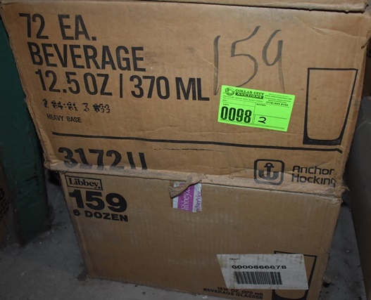 Lot of 2 cases consisting of one case of Anchor Hocking 12.5 oz Beverage Glasses and one case of Libbey Glasses