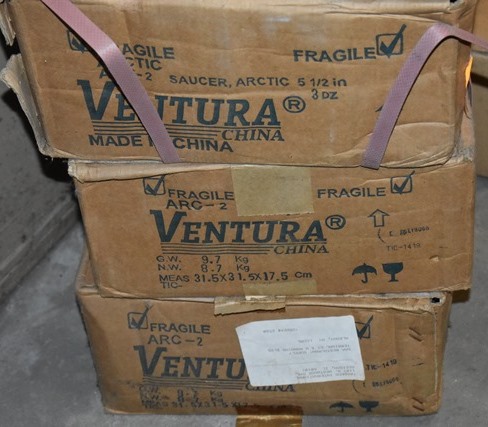 Lot of 3 cases Ventura Arctic ARC-2 5.5" saucers, approx 3 doz per case