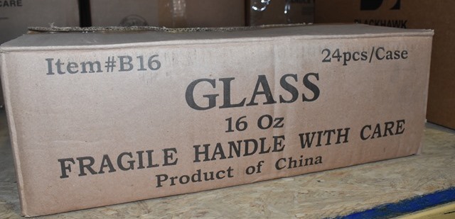 Case of 16 oz Glasses, Item #B16, approx. 24 per case