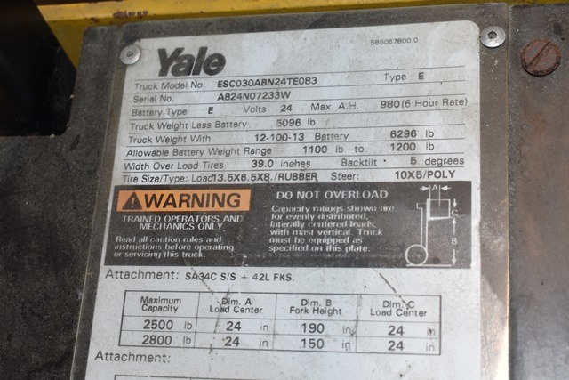 Yale Type E Battery Powered 3-Wheeled Fork Truck