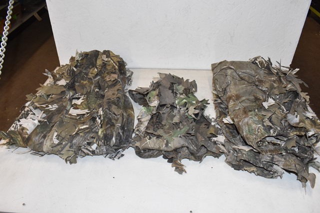 Lot of Ghillie Style Hunting Apparel, One XXL/XXL Jacket, One XXL Pant, Two Jackets/Pants L/XL, One Hood