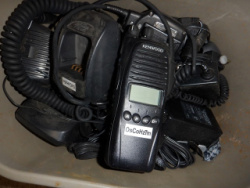 Lot of Kenwood UHF Portable Radios, Desk Chargers, Lapel Microphones, Throat Microphones, Spare Cables, Other Parts. Some Portables May Not Function, but Majority Of Them Do Work Fine. Batteries In Various Conditions.