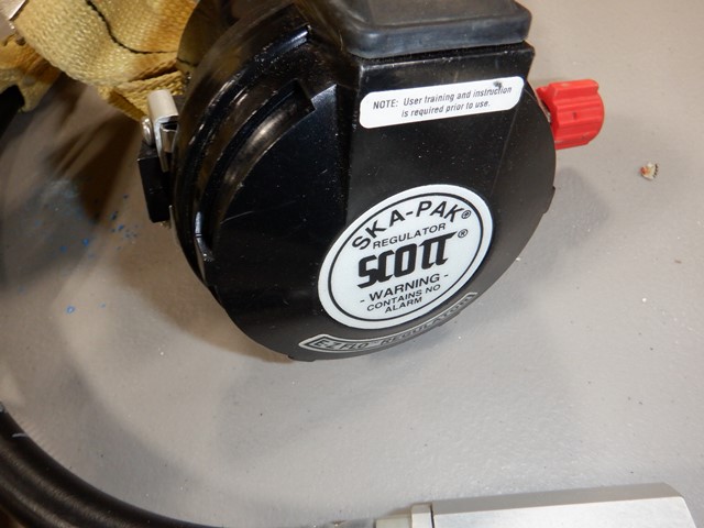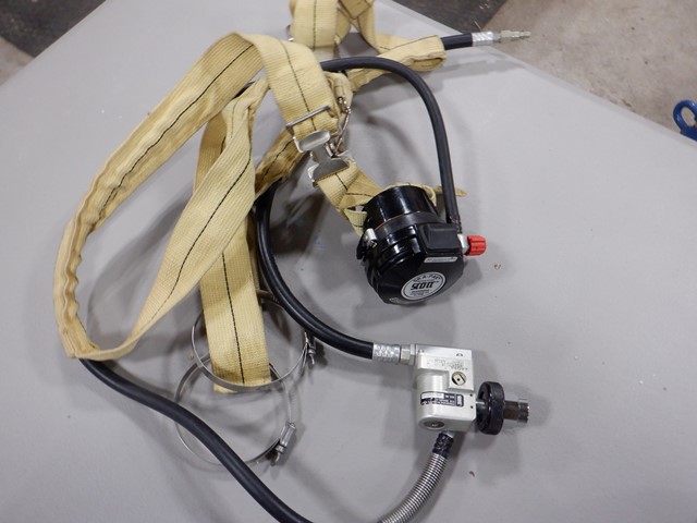 Kevlar Waist and Shoulder Harness with Mask Mounted Regulator. Units Manufactured in 1996. Compatible with Standard Breathing Air Hose Fittings.