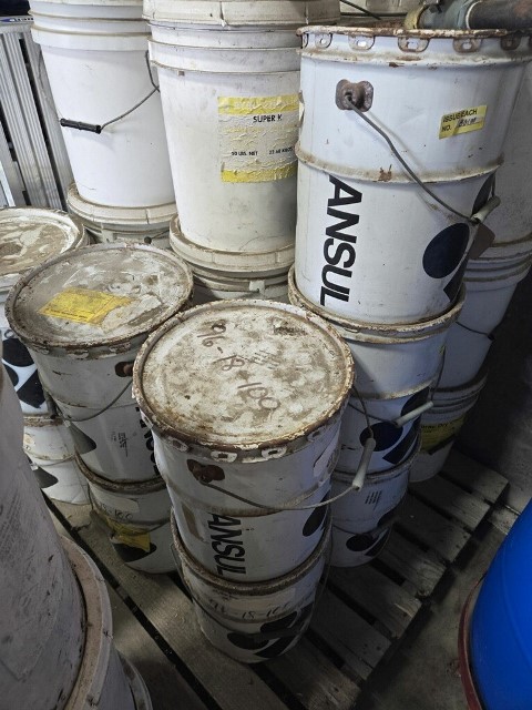 New, Unused, Sealed 50lb. Metal Pails of Purple K Dry Chemical Extinguishing Agent.