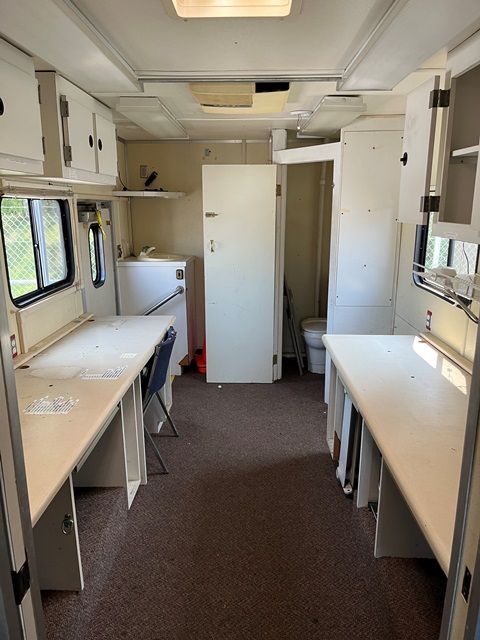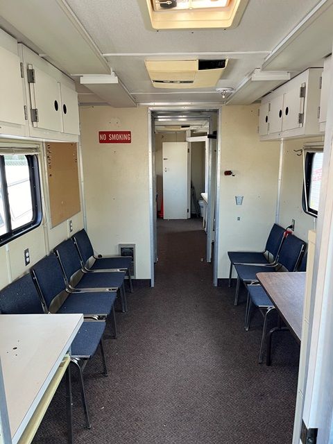 Features a Bathroom, Sink, 2 Undercarriage Mounted Gas Generators, a Conference Room, Rear Workbenches, 2 Entry Doors, Dual Roof Mounted Heaters/Air Conditioners, Runs Off On Board Generator or Shore Plug
