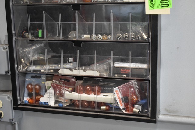 Lightbulb Cabinet With Assorted Lightbulbs 19" Wide X 27" Tall Includes Headlight Modules, Headlight Bulbs