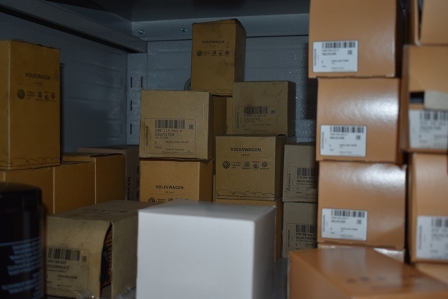 Shelf Lot of Assorted Oil Filters Including Maserati, Volkswagen, etc.