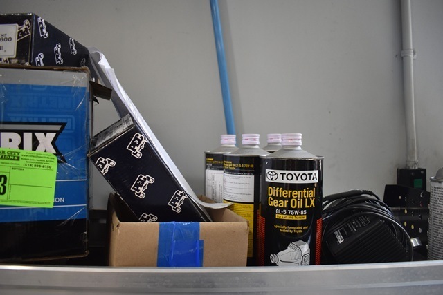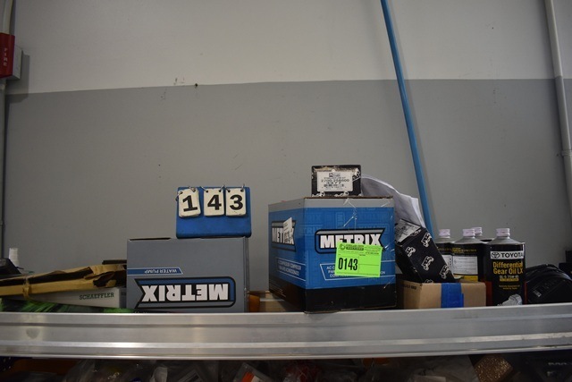 Shelf Lot Including Toyota Differential Gear Oil, Cords, Assorted Parts, Wipers, etc.