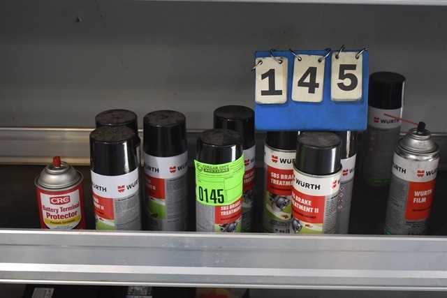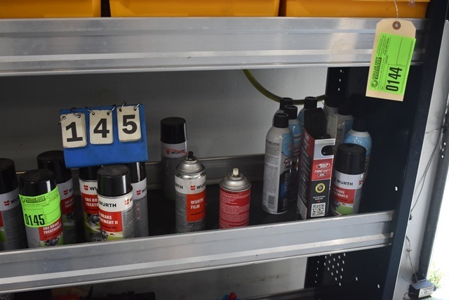 Shelf Lot of Fluids Including Brake Cleaner, SBS Brake Treatment