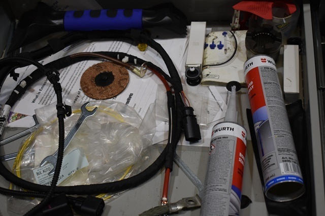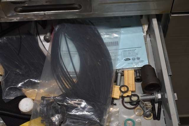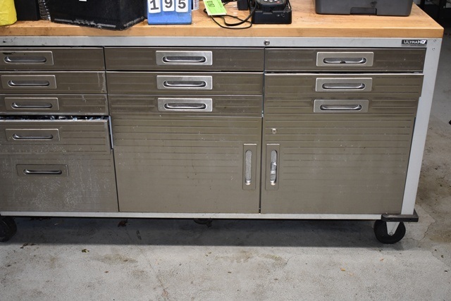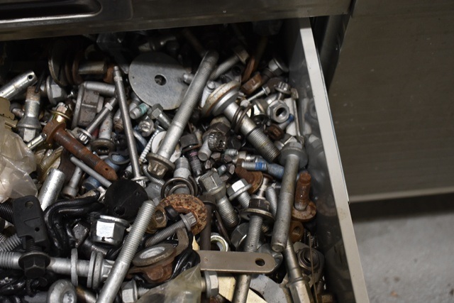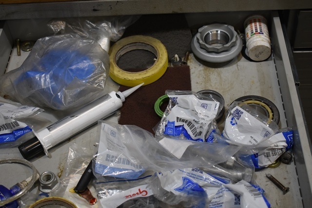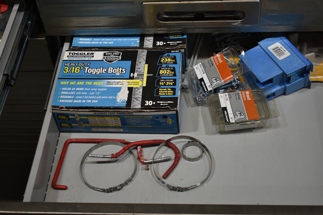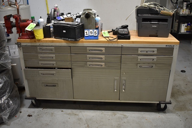 72" Roll Around Toolbox with Vise and Contents Consisting of Automotive Parts, Zip Ties, Bolts, Lug nuts, etc.