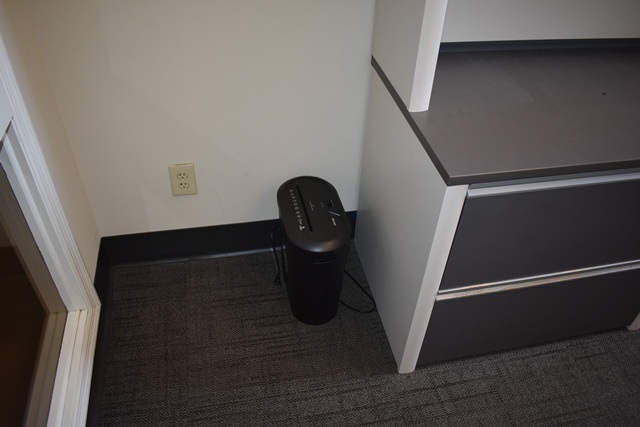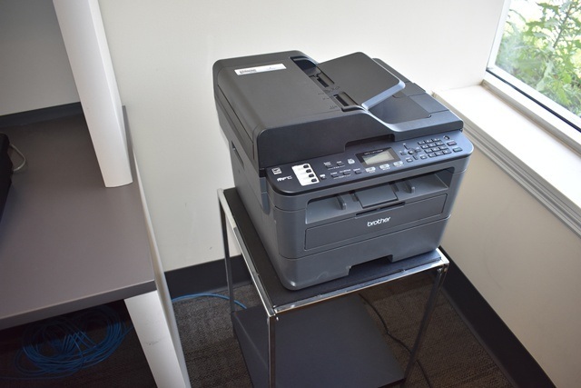 Office Contents Consisting of 2 72" Desks, Brother Printer, Chairs, Paper Shredder