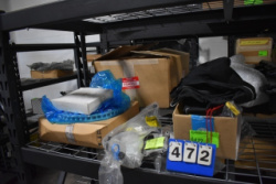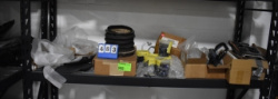 Shelf Lot of Assorted Parts Including Karma Generator Inverter, Power Cables, Window Parts, Etc.