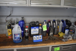 Shelf Lot of Fluids Including Brake Cleaner, SBS Brake Treatment