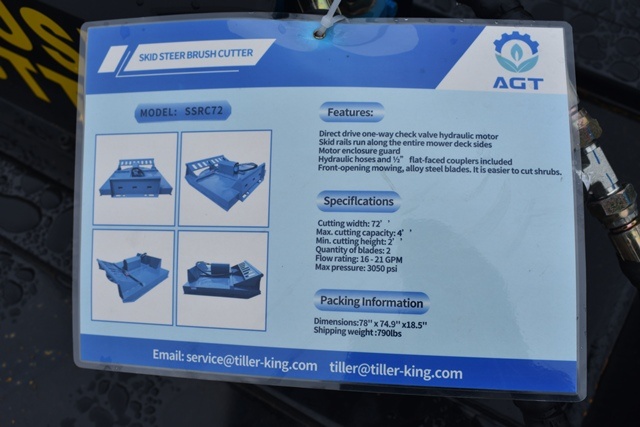 working width 77 in, Direct Drive Hydraulic Motor, Quick Attach, 790lbs. NOTE: GEAR BOX NEEDS OIL BEFORE USING