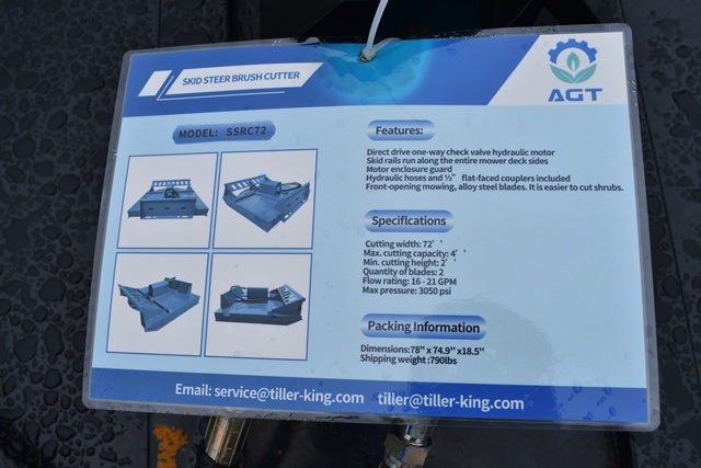 working width 77 in, Direct Drive Hydraulic Motor, Quick Attach, 790lbs. NOTE: GEAR BOX NEEDS OIL BEFORE USING
