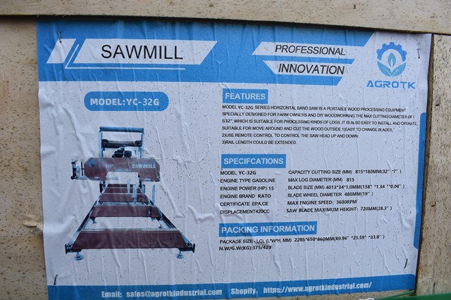 Engine: RATO 15HP 32 in Max Log Diameter, Blade Size:158”x 1.34“ x 0.04”