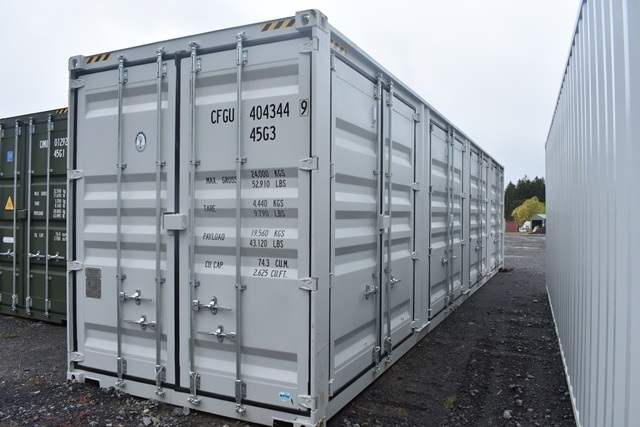 Four Side Open Door, one end door, lock box, side forklift pockets. Measures 8FT Wide, 40FT Long, 113"Tall. Side Door Opening Measurement: 92" W x 100" T x 88" Deep, Weight 9,500lbs.