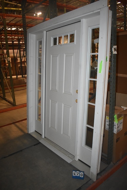 3/0 6/8 LH WHITE FIBERGLASS ENTRY DOOR TWO 14'' SIDE LITES