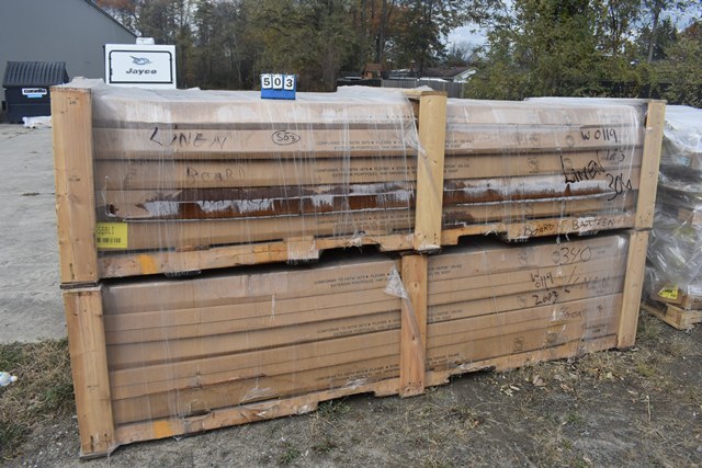 ROYAL SIDING BOARD AND BATTON LINEN 45 SQUARE, D4 LINEN SIDING 47 SQUARE, ISCP 24, FREIZE TRIM QTY 94, FINISH TRIM QTY 126, 5/8 J-CHANNEL QTY 91, OSCP QTY 29, 3/4 J-CHANNEL QTY 29, FRIEZE TRIM QTY 14, 1/2 J-CHANNEL QTY 43