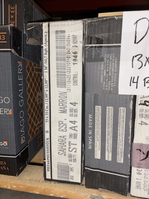 Tile, Diago "Sahara" 13 x 13-inch; 9 pieces / 10.7 sq.ft. per carton; 14 cartons / 149.8 sq.ft. in total
