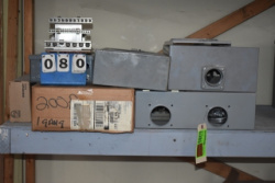 Shelf Lot of Black Plastic Wire Enclosures
