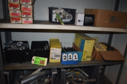 #34 - Shelf Lot of Halogen Light Bulbs, Recessed Light Can, and Electrical Outlets
