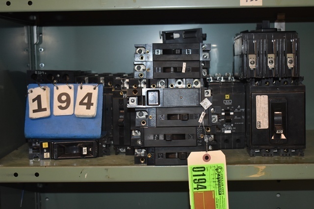 Shelf Lot of Square D, Westing House, GE, and FPE Circuit Breakers