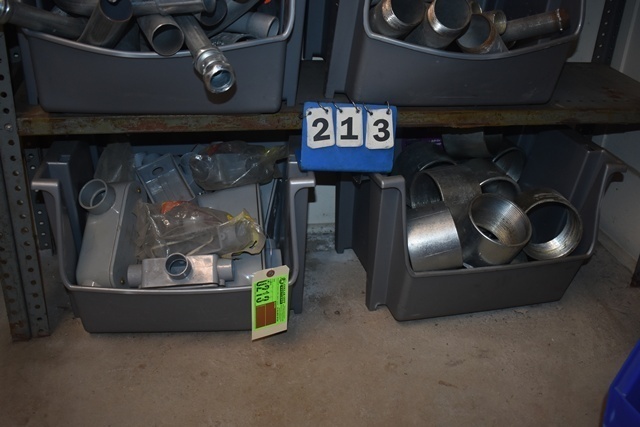 Shelf Lot of PVC LB's, Assorted Sizes, Assorted Metal Couplers