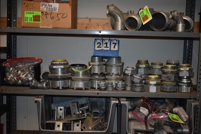 Shelf Lot of Assorted EMT Crimp Connectors, 1/2" to 3"