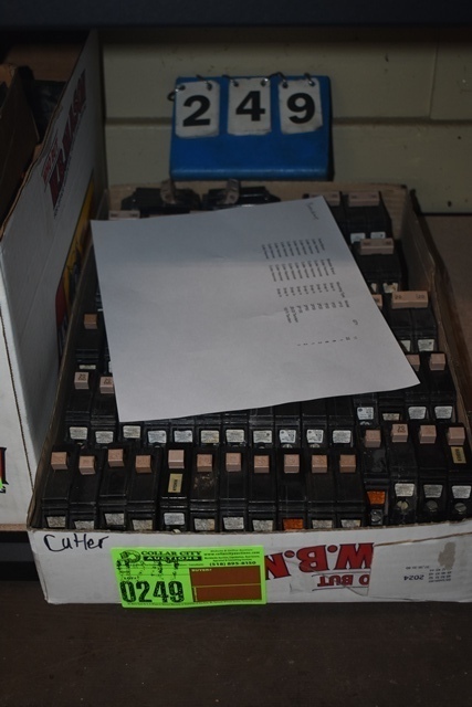 Box Lot of Cutler-Hammer Span-in Breakers, 1P15, 1P20, 1P30, 2P20, 2P30, 2P50, 2P100, 2020 Tandem, 1515 Tandem