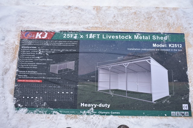 Assembly dimensions: 11FT tall in front, 9FT tall in back, 25FT long, 12FT wide