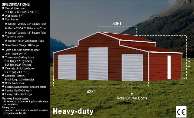 Overall dimension: 30 FT(L) x 42 FT(W) × 13FT(H)