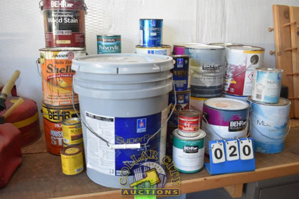 LARGE LOT OF ASSORTED PAINT AND STAIN