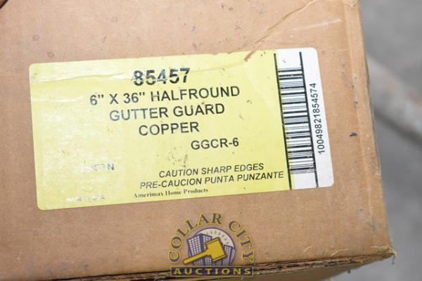 BOX WITH 6" X 36" HALF ROUND GUTTER GUARD, COPPER, APPROX. 14 PIECES +/-