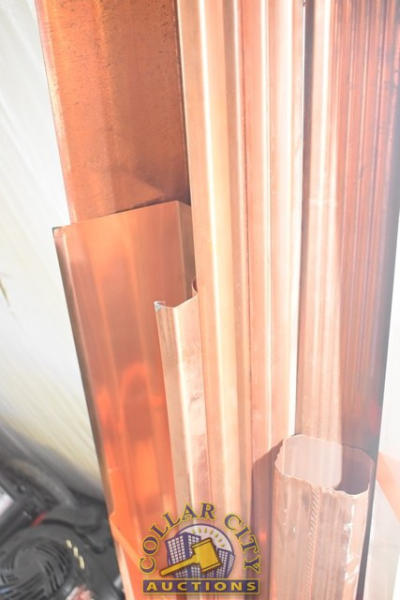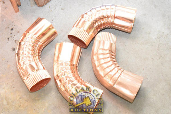 LOT CONSISTING OF 4 10' LONG X 6" WIDE COPPER GUTTERS, 1 5' SECTION AND ASSORTED DOWN SPOUTS AND ELBOWS